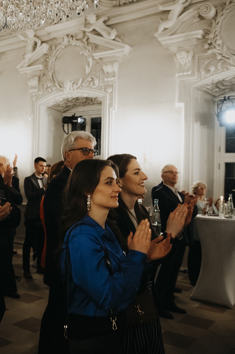 Was dabei hängen blieb, waren die tolle Musik des Jugendchors, die Begeisterung über die freien, charmanten und teils witzigen Passagen in den Ansprachen der verschiedenen Redner*innen, die außergewöhnliche Location, die Unterhaltungen mit neuen Bekanntschaften, die schmerzenden Füße und die Freude und innere Zufriedenheit, an einem solchen Event sowohl als Helferin als auch als Gast teilgenommen zu haben. Der Blick hinter die Kulissen und das Erleben des Endergebnisses war sehr spannend und verbleibt dementsprechend positiv im Kopf. Die schönen Eindrücke des Abends weckten in Ariane und Sophia die Lust, vor allem hinter den Kulissen solcher Veranstaltungen die Fäden zu ziehen und für die geladenen Gäste einen Abend zu kreieren, an den sie sich gerne erinnern werden.