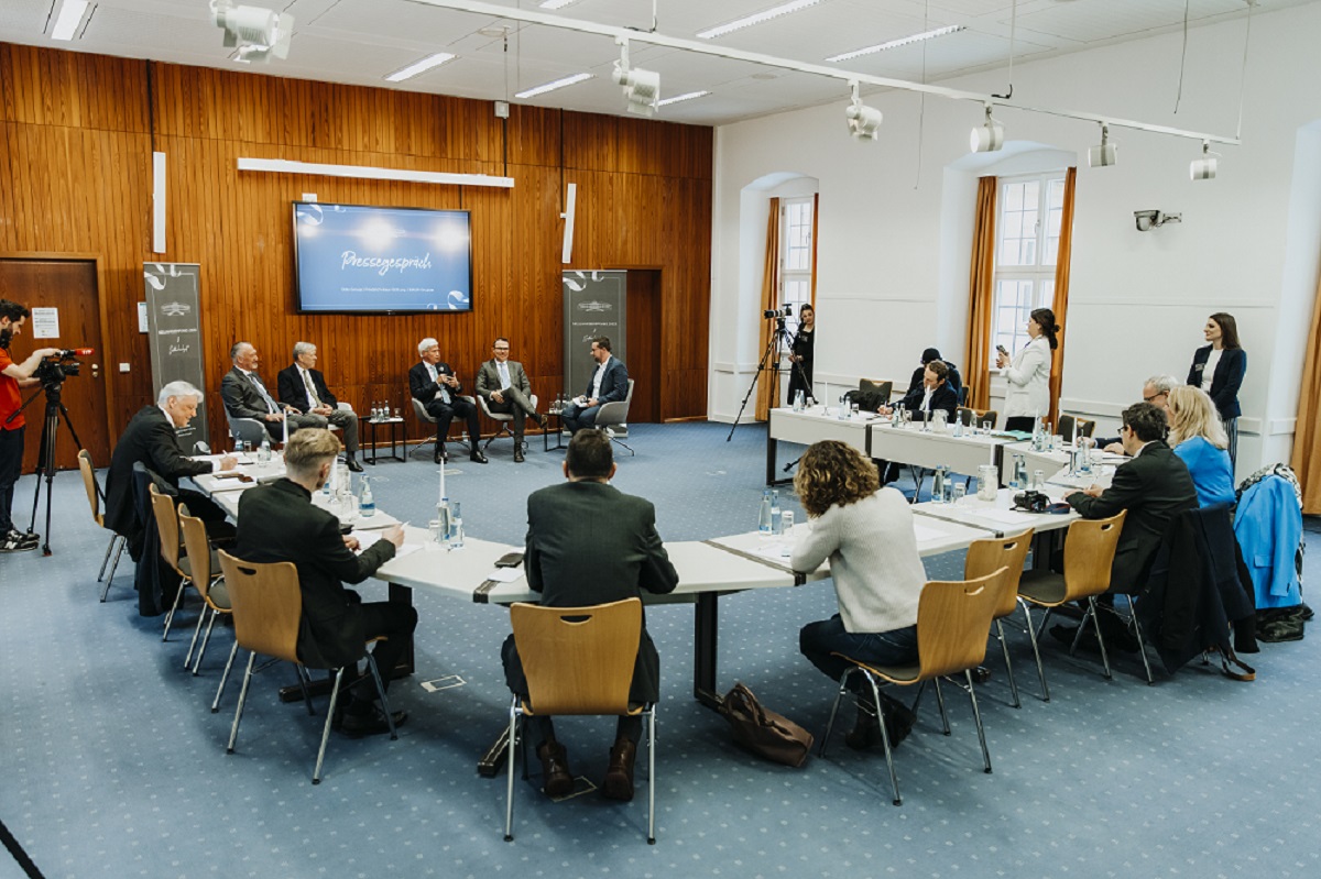 Der erste Tagespunkt, an dem es für Ariane tatsächlich ernst wurde, war das Pressegespräch. Sie und ihre Kolleg*innen hatten während des Gesprächs einige Aufgaben: Die Uhrzeit im Auge behalten, die Mikros austauschen, sollten sie den Geist aufgeben und Mikros denjenigen Journalist*innen reichen, die in der Fragerunde ihr Wort an Dr. Michael Otto, Dr. Georg Freiherr von Waldenfels, Kay Schiebur oder Stephan P. Elsner richten wollten.