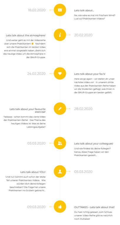 Anna: Unser Lieblingsvideo ist definitiv das, in dem die Praktikanten ihre Kollegen beschreiben sollen. Wir finden die Antworten von den Studis einfach super ehrlich und echt amüsant. Und auch das Outtake-Video zählt zu unseren Favoriten. Das hat uns beim Schneiden wohl am meisten Spaß gemacht!