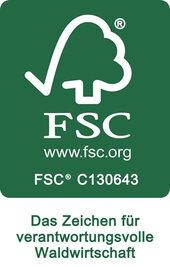 Dieses Siegel unterstützt den Schutz der Wälder. Produkte mit diesem Siegel entstehen aus verantwortungsbewusster Waldwirtschaft, bei der auf strenge ökologische, soziale und wirtschaftliche Standards geachtet wird.