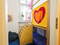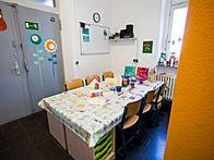 We moved from Kulmbacher Straße in Burgkunstadt to the old post office in Burgkunstadt in 2010. The post office was converted especially for us. We were the first to move in here. We have retained some of the character of the post office, for example the vestibule at the front. The former telephone box was where the children put their toys away. The counter area is also still original. But on the whole, everything is now set up as an "after-school club".