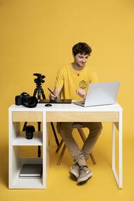 It's difficult to summarizemy daily tasks because itreally is something different every day. We have different departments in which we rotate every 6 months, such as internet photography, furniture, on location, fashion, shoes and bags. These tasks are extremely varied. I don't have a favorite department either, everything has its appeal. This week we were commissioned to produce photos for a computer accessories manufacturer. To do this, we built two rooms in the studio, e.g. a gaming basement, and two models came along. A photo shoot is not just about taking pictures, because you also have to name the pictures and make sure the lighting is right so that the product comes out well. You are also in contact with the customer to clarify whether everything is being implemented according to their ideas. We also do intranet portraits and general projects for the BAUR Group, such as video shoots for the learning platform. A video shoot like this involves a lot of effort. You have to know your equipment, travel to other locations and create a concept for the job in advance.